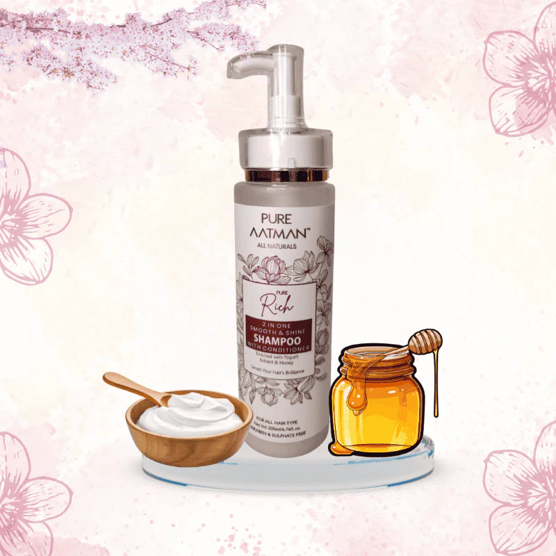 PURE AATMAN 2 in 1 Yogurt & Honey Shampoo & Conditioner Promotes Healthy, Shiny and Glossy Hair | Makes Hair Soft & Smooth | Paraben & Sulphate FREE | 200ml