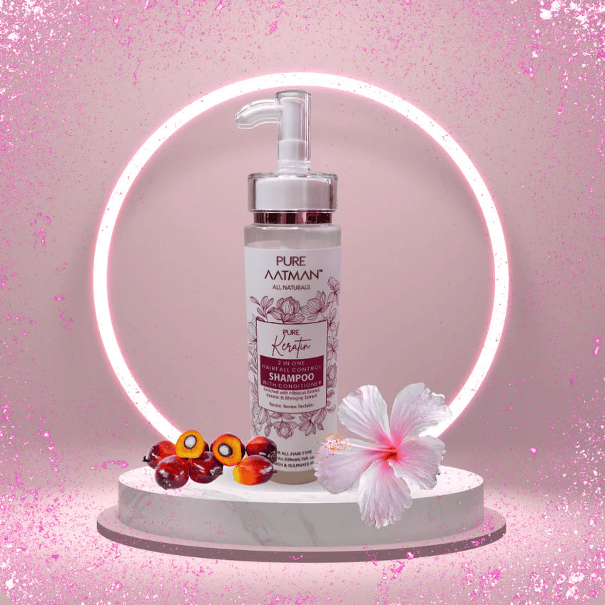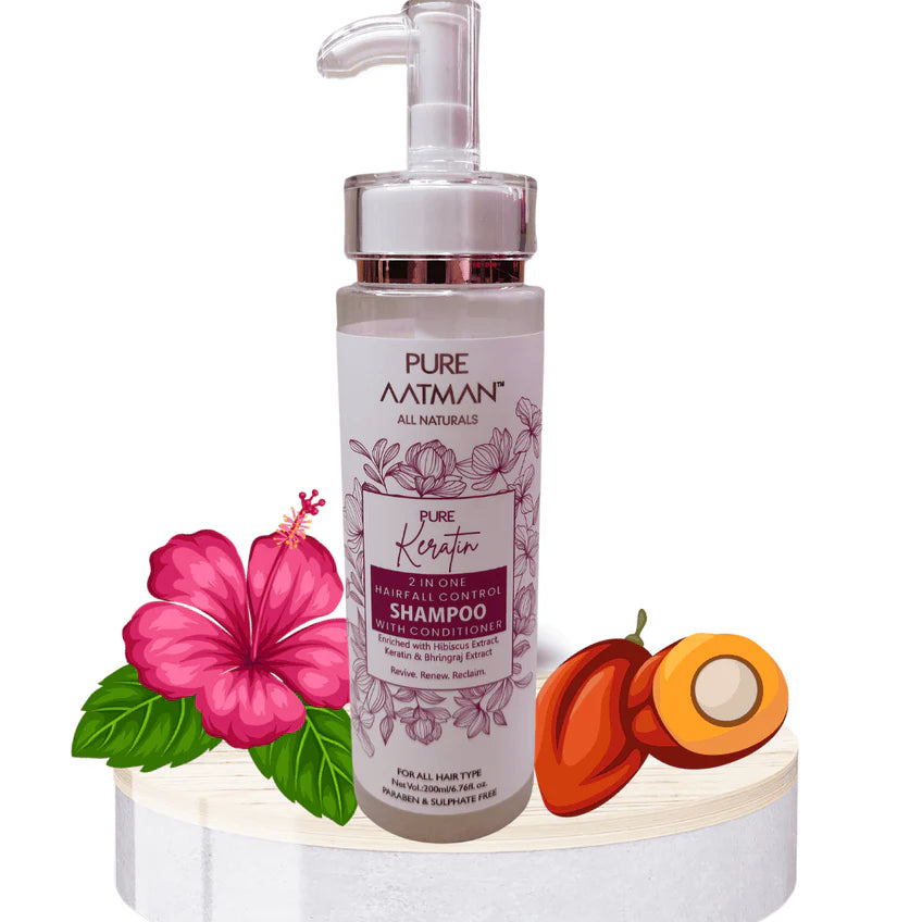 PURE AATMAN 2 in 1 Keratin Shampoo & Conditioner for Hairfall,Straighter, Shinier Hair with Keratin & Bhringraj Oil, Nourishes Dry Hair, Controls Frizz Hair | Suitable for all Hairs | 200 ml